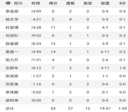 CBA常規(guī)賽,同曦vs四川,這場(chǎng)比賽打的可謂相當(dāng)難看,四川隊(duì)首節(jié)上來(lái)就11:28落后17分,全隊(duì)打的毫無(wú)章法,甚至后衛(wèi)運(yùn)球過(guò)半場(chǎng)后,多次被生斷,最終球隊(duì)以53:84狂輸31分之多。這場(chǎng)比賽,四川男籃被南京同曦全場(chǎng)壓制,多名球員3中0,甚至5中0,而更讓人無(wú)語(yǔ)的是,全隊(duì)三分20中1,命中率僅為5%,這不僅讓人感嘆,這哪像職業(yè)球員啊!