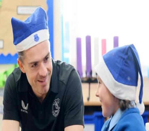 俱樂(lè)部近日發(fā)布了一段視頻,記錄下孩子們見(jiàn)到格拉利什時(shí)欣喜若狂的模樣。這位從曼城租借至埃弗頓的前阿斯頓維拉球員,和孩子們一起制作圣誕手工藝品,還開(kāi)玩笑說(shuō)自己和喬治是“好哥們兒”。