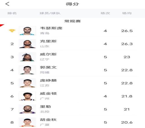 作為一名1年級新秀,龐崢麟實(shí)在是太厲害了,他的速度和節(jié)奏都是CBA頂級,這賽季5場比賽,每場都得分上雙,場均上場30.9分鐘,能得到22.8分3.6籃板4助攻,投籃命中率高達(dá)59.4%,三分球命中率50%,其中場均得分高居CBA第四位,和郭昊文并列,投籃命中率和三分球命中率則比很多外援都要高,比如說場均得分排名第二的山東外援克里斯(206cm),命中率就只有50.8%,而遼寧男籃的小外援威爾斯,投籃命中率更是只有45.3%。