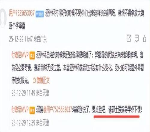 準國手戰(zhàn)魚腩打53秒+3國手0分,付政浩:郭士強夾帶私貨早點下課