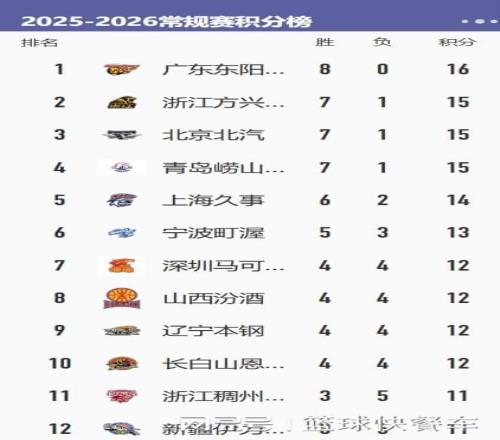 CBA常規(guī)賽第8輪全部戰(zhàn)罷,廣東、北京、廣廈等隊悉數(shù)出戰(zhàn)。11冠王廣東隊這一戰(zhàn)大勝天津隊,成功豪取8連勝,憑借著8勝0負(fù)的戰(zhàn)績,直接沖上積分榜榜首的位置。而北京隊在輸給衛(wèi)冕冠軍廣廈后,他們的排名已經(jīng)下滑到積分榜第3,廣廈在擊敗北京隊后,他們則重返積分榜第2。山西隊在爆冷輸給山東隊以后,他們的排名也下滑到積分榜第8,另外四冠王遼寧隊已經(jīng)跌出前八了。