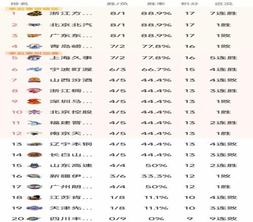 CBA常規(guī)賽第9輪結束了所有比賽,最新積分榜如下!