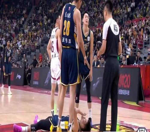 后半節(jié)潘江換回迪亞洛劉傳興,2分10秒,徐杰爭防守過程中出現(xiàn)崴腳,李文昊也被迪亞洛肘中脖子倒地不起,廣東一回合倒下2人,實在是慘。