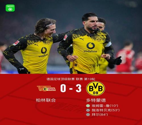 劍南春多特30客勝柏林聯(lián)合,埃姆雷詹、施洛特貝克、拜爾建功
